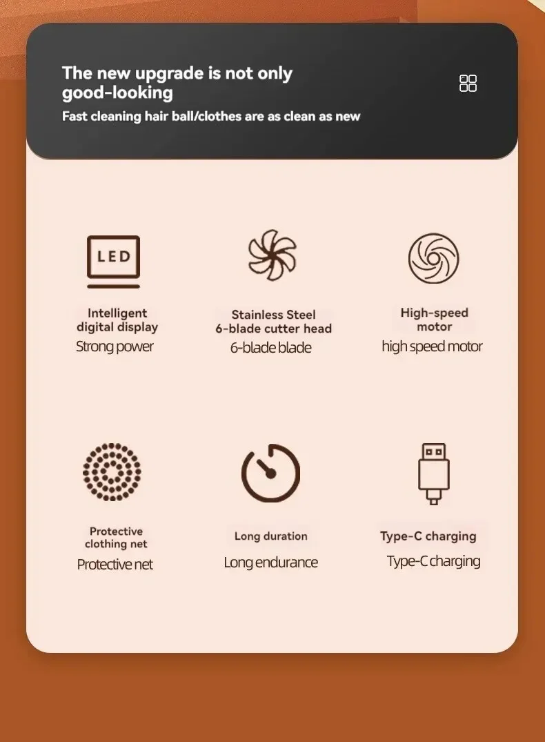 Caratteristiche: 【Rimuovi Pelucchi Efficiente e Durevole】 - Alimentato da un potente motore a 8000 giri/min, taglia 132000 volte al minuto senza danneggiare i vestiti. La lama in acciaio di precisione a 6 foglie rimuove efficacemente peli e piccole palline di pelo, adattandosi in modo flessibile ai tessuti e funzionando senza punti ciechi.